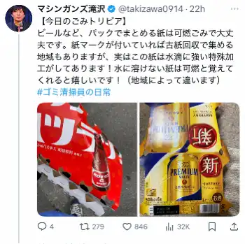 「可燃ごみで大丈夫」なモノ“ごみ清掃員芸人”が指摘「実は水滴に強い特殊加工がしてあります」