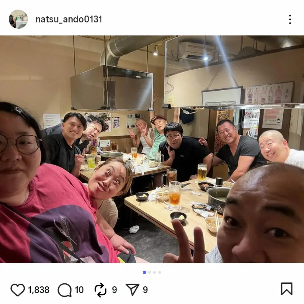 お笑いコンビ「メイプル超合金」の安藤なつ(44)が1日までに、自身のインスタグラムを更新。人気芸人が集まった食事会の様子を伝えた。