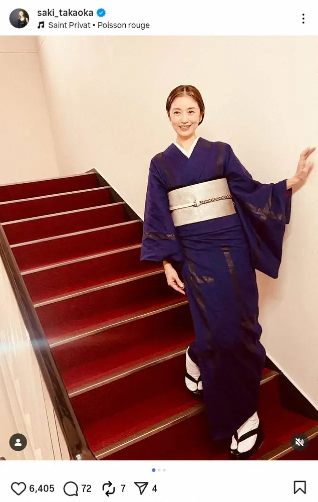 高岡早紀「紫の麻の着物にしました」オフショにファン釘付け「なんだか名画」「艶っぽくて素敵」「最高」
