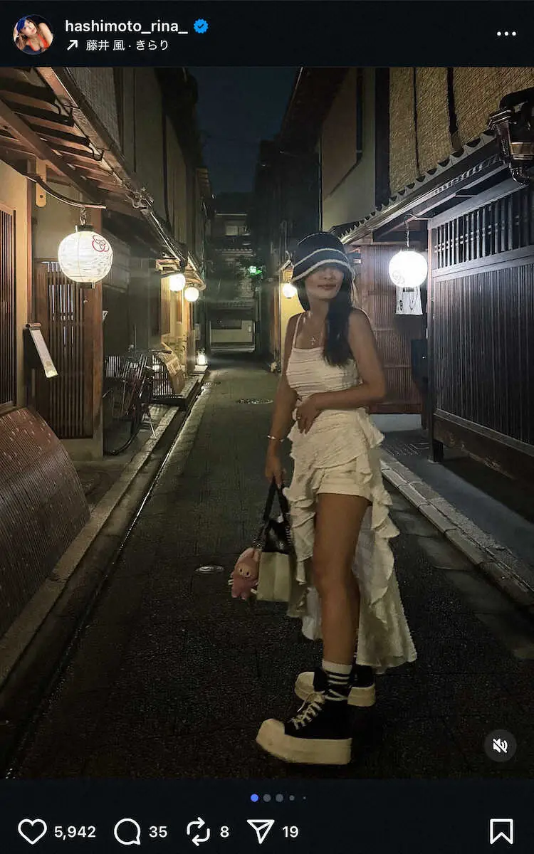 「京都でお寿司食べたり、台湾でまたファンのみんなに会えたりいつも笑顔いっぱいのみんなが可愛い」と京都での“美脚”際立つ白タンクトップコーデ姿や満点な笑顔ショットなどを公開した。