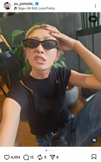 山田は韓国発のアイウェアブランド「ジェントルモンスター(Gentle Monster)」をメンション。個性的なサングラスやめがねを着用したオフショットを掲載した。