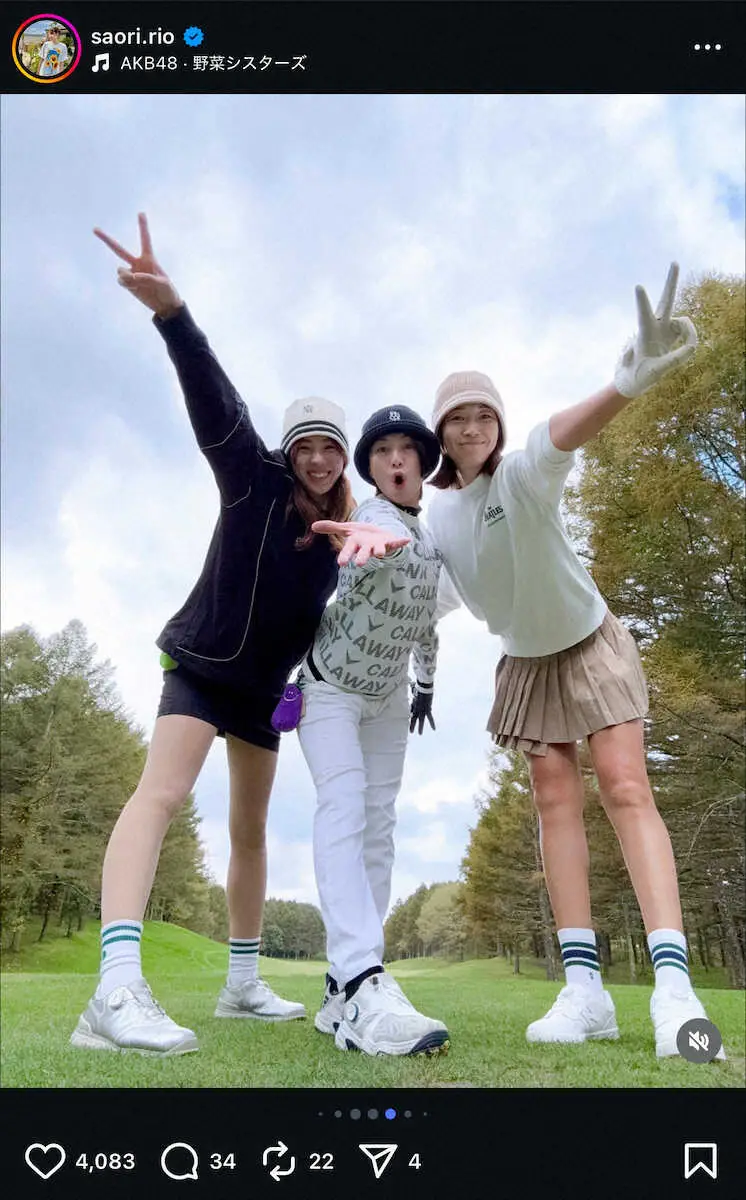 「ゴルフを始めてなかったらと2人こんなに仲良くならなかったと思う笑」とつづった上で、「今回の合宿、2人のおかげで無事に始まり無事に終えることが出来て本当にありがとうございました。ゴルフだけではなくて個人的にもいろんなことを感じるきっかけをもらいました。ありがとう!」と感謝。そして“美脚”際立つゴルフウェア3ショットなどを公開した。
