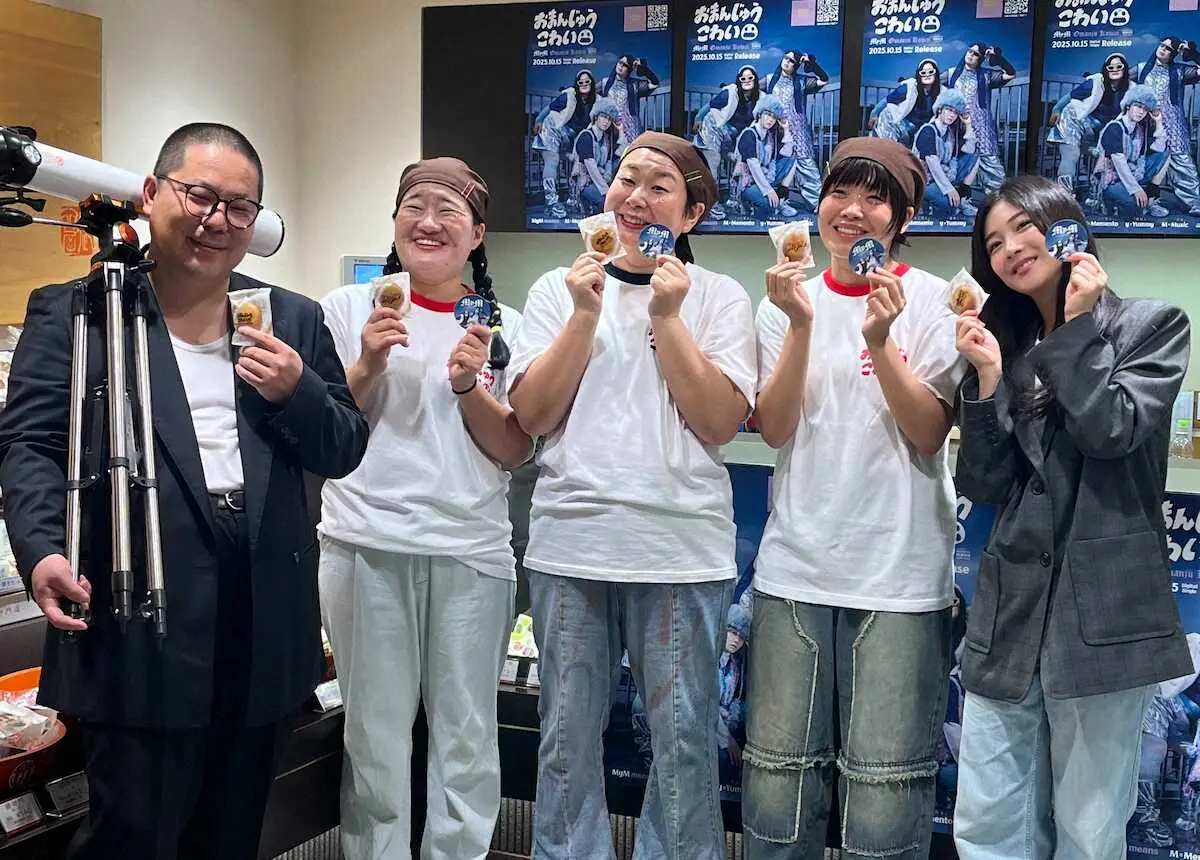 菓子店の制服に身を包み、タイトルにちなんだ揚げまんじゅうのお渡し会を実施。イベントを終えたYoshiko(よしこ)が「緊張したけど、今日はベテランパートさんがおられたので、安心してお仕事できました」と隣のMiyuki(大島)をイジると、Miyukiは「誰がベテランパートや」とすぐさまツッコみ。「そうですね、25年近く働いているので、一人でもレジ締めとかできます」と貫禄たっぷりに語り報道陣を笑わせた。