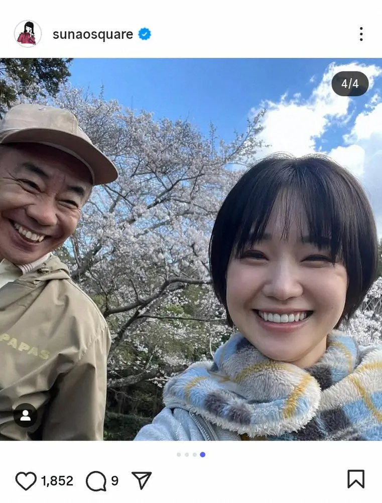 「そして、また憲さんと桜見れるなんて、ご褒美でした」とお笑いコンビ「とんねるず」木梨憲武と最終回で共演を果たしたことを明かし、木梨との桜をバックにした2ショットを投稿。「原作も是非お手に取ってください」とアピールした。