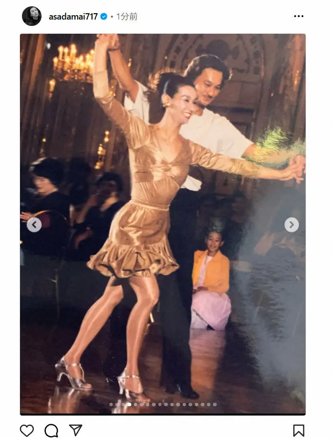 さらに「4枚目の写真は、社交ダンスを楽しむ父と母を嬉しそうに見つめる小学生の頃の私」とし、両親が笑顔で踊る姿を見つめる自身の写真を投稿した。
