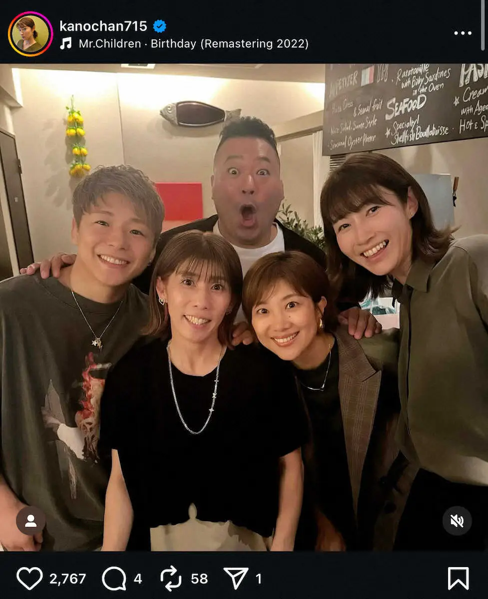 元バレーボール日本代表の狩野舞子さん(37)が6日までに自身のインスタグラムを更新。豪華アスリートが集結した女子レスリング五輪3連覇の吉田沙保里さんの誕生日会の様子を投稿した。