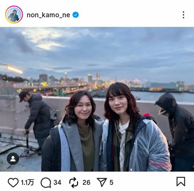 女優・のん(32)が7日までに自身のインスタグラムを更新。共演女優との2ショットを公開した。