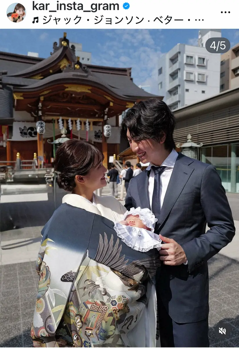 「お宮参り 家族で迎える初めての節目。これからも健康で、幸せでありますように」とつづり、家族で水天宮にお参りする動画をアップした。