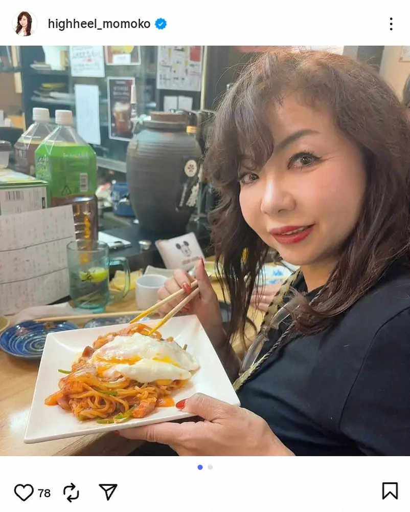 お笑いコンビ「ハイヒール」のモモコ(61)が8日、自身のインスタグラムを更新。行きつけの飲食店での写真を披露した。