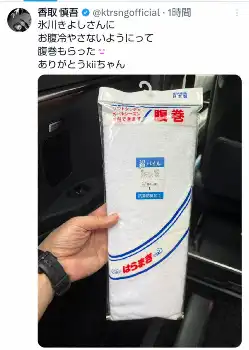 2人は7日放送のNHKの音楽番組「うたコン」で共演。その際にプレゼントを手渡された模様で「氷川きよしさんにお腹冷やさないようにって腹巻もらった ありがとうkiiちゃん」と感謝した。