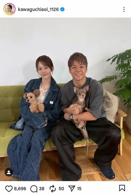 タレントの川口葵(26)が11日までに自身のインスタグラムを更新。夫でK―1元3階級制覇王者の格闘家・武尊(34)との2ショットを披露した。