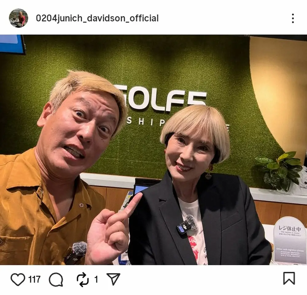 お笑いタレント・じゅんいちダビッドソン(50)が14日、自身のインスタグラムを更新。親交のある人気女優との2ショット写真を披露した。