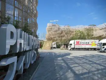 大阪・関西万博は閉幕から一夜明けた14日、早くも各パビリオンで撤収、解体作業がスタート。トラックがパビリオン前に並び、展示品や机、イスなどを運び出すスタッフの姿が見られた。