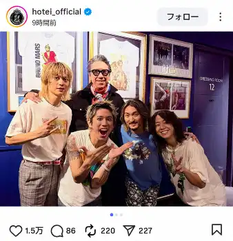 布袋寅泰 ワンオク楽屋での貴重オフショ公開「汗だらけの眩しい4人」ファン歓喜「凄い」「エグい」
