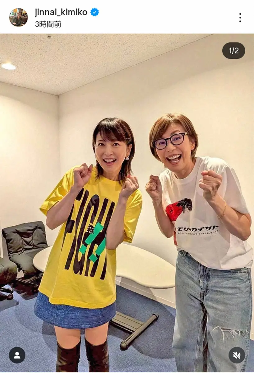 さらに「そしてもう一つ感動したことが…コンサートの後、幼なじみと一緒に私も会えましたが、普通に熊本弁で話すのを見て、どんなに時を重ねても、友を大切にし、自然体で飾らない姿…ステージ上の彼女と同じくらい輝いていました」と、ステージ外での森高にも魅了された様子。2ショット写真も投稿し「千里ちゃん、写真撮ってくれてありがとう 同じ熊本県人で幸せだぁ」とつづった。