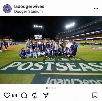 夫人会のインスタグラムは「さぁ、ワールドシリーズの時が来た!」と記し、ブルワーズとのナ・リーグ優勝決定シリーズ(NLCS)第4戦に勝利後、グラウンドで集合写真を撮る夫人らの姿を公開した。