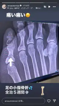 梅宮アンナのインスタグラム(@annaumemiya)から 梅宮アンナ 足の小指骨折で全治5週間 レントゲン写真添え公表「痛い痛い」 ギャラリーで見る この記事のフォト 2025年10月19日の画像一覧 もっと見る 2025年10月19日の画像をもっと見る