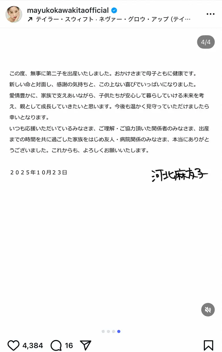 河北麻友子 Photo by スポニチ 河北麻友子、第2子出産を発表「愛情豊かに、家族で支えあいながら」「この… ギャラリーで見る この記事のフォト 2025年10月23日の画像一覧 もっと見る 2025年10月23日の画像をもっと見る