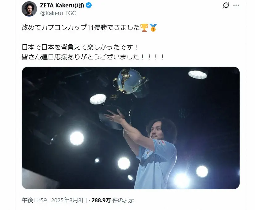 翔のX(@Kakeru_FGC)から スト6世界王者 プロゲーマー・翔が引退発表 神経機能の不調で「選手とし… ギャラリーで見る この記事のフォト 2025年10月23日の画像一覧 もっと見る 2025年10月23日の画像をもっと見る