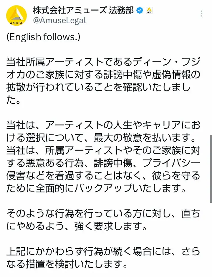 ディーン・フジオカ Photo by スポニチ ディーン・フジオカ家族への誹謗中傷、虚偽情報拡散…アミューズ法務部が警… ギャラリーで見る この記事のフォト 2025年10月25日の画像一覧 もっと見る 2025年10月25日の画像をもっと見る