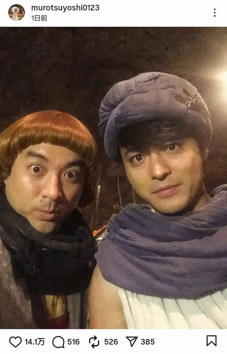 「勇者ヨシヒコ」はテレビ東京で2011年から16年にかけて放送されたドラマシリーズ。主人公のヨシヒコを山田が演じ、ムロは魔法使いのメレブを演じた。