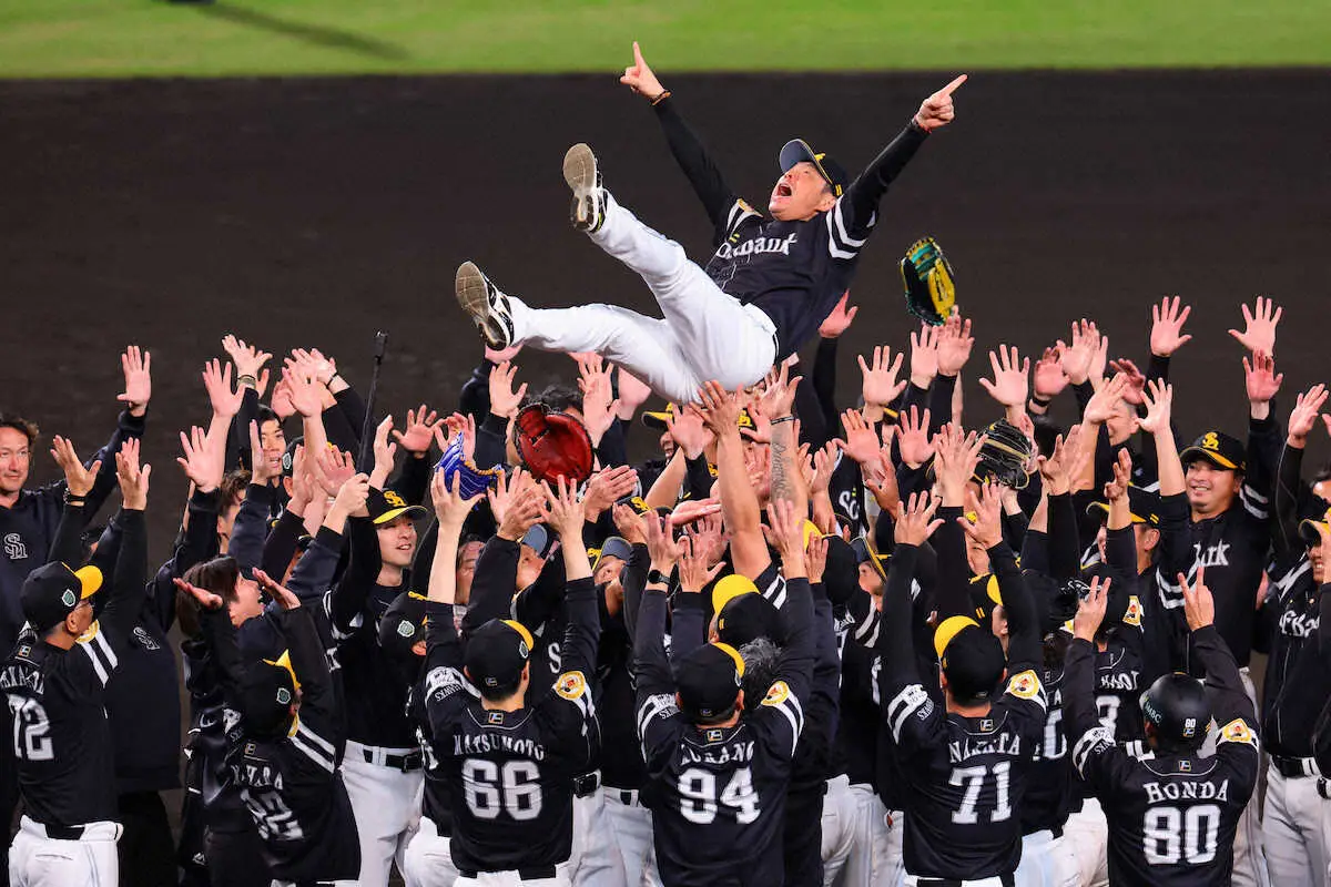 兵庫・甲子園球場で行われた同試合で、ソフトバンクが阪神を3―2で下し、4連勝で2020年以来5年ぶり12度目の日本一を達成。8回に柳田悠岐外野手の左越え2ランで同点に追い付き、2―2の延長11回に野村勇が決勝の右越えソロ。監督就任2年目で小久保裕紀監督が宙を舞った。