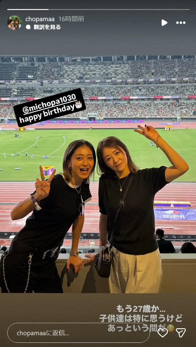 30日に27歳の誕生日を迎えたみちょぱ。京子さんはストーリーズにみちょぱとの2ショットを投稿。