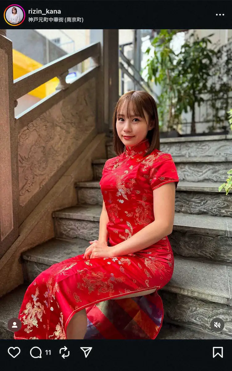 RIZIN美人広報 神戸でのチャイナ服コスプレS!「凄く似合ってる」「気品がある」の声