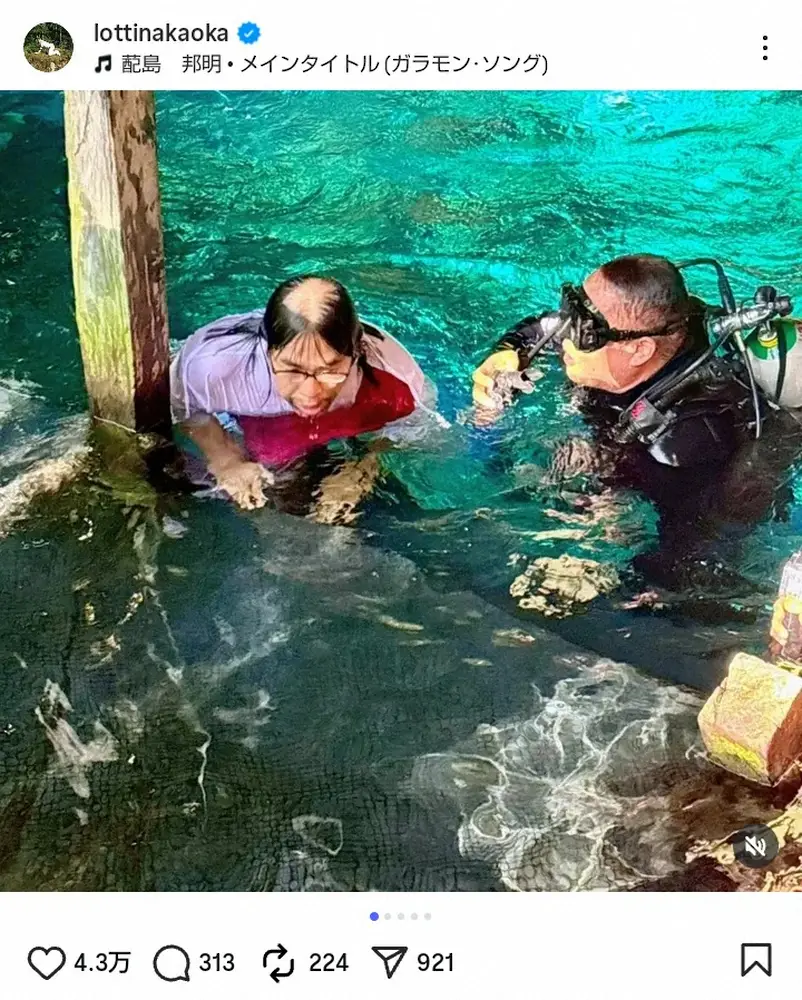中岡は「メキシコ河童中岡」とのタイトルで、「イッテQのQtubeでのオフ写真」と報告。「太陽光のイタズラでメキシコ河童中岡が出没しました」と、ダイビング中の自身の姿をアップした。