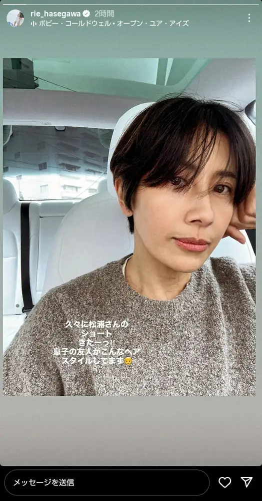 長谷川は「久しぶりの松浦さんショート!」と書き出し、「夏はロング 冬はショートが好き」と告白。「息子のお友達が同じようなヘアスタイル 男子この髪型流行ってる?」と、ヘアカット後の姿を披露した。