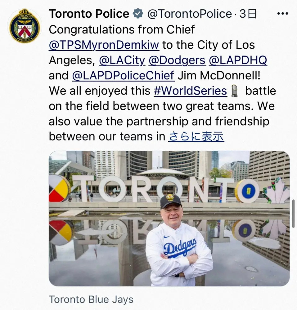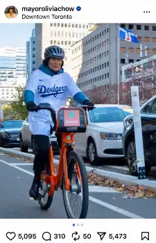 トロント市長のオリビア・チョウ氏のインスタグラム(@mayoroliviachow)から トロント市長“屈辱的”なドジャースユニ姿披露 WS“賭け”でBジェイズ敗戦 … ギャラリーで見る この記事のフォト 2025年11月06日の画像一覧 もっと見る 2025年11月06日の画像をもっと見る