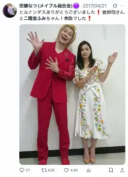 「メイプル超合金」の安藤なつ Photo by スポニチ 安藤なつ「ガタガタ手が震えた」カズレーザーからのLINE 呼び出された店… ギャラリーで見る この記事のフォト 2025年11月08日の画像一覧 もっと見る 2025年11月08日の画像をもっと見る