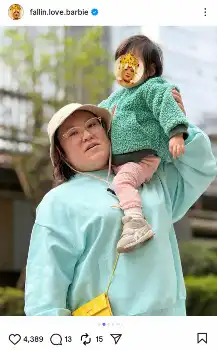 バービー 1歳長女“肩乗せ”写真に反響、ビフォアフの「必死な私」も公開「お母さんステキ」
