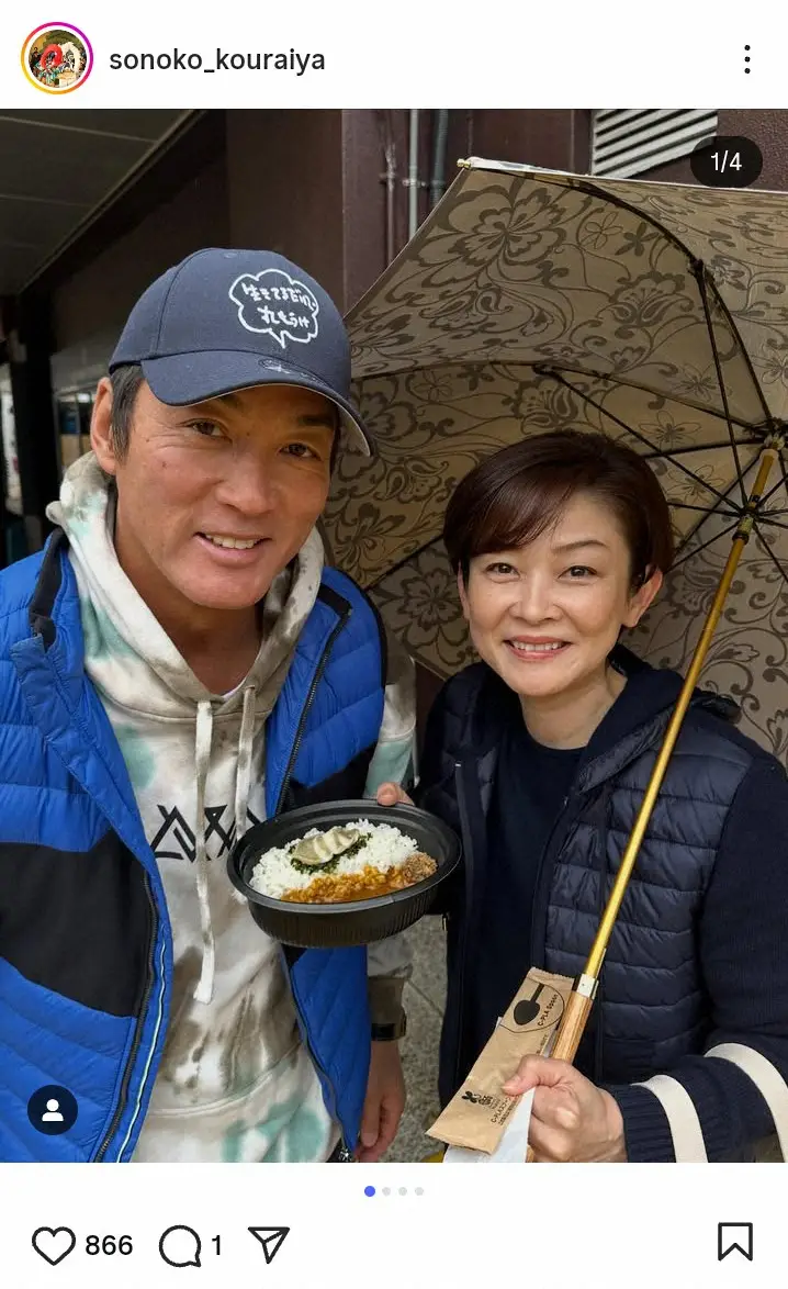 「一茂さんの#アワビカレー」とつづると、元プロ野球選手でタレント長嶋一茂と、カレーを手にした自身のショットをアップ。