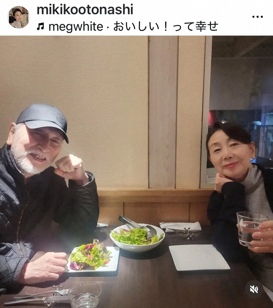 女優の音無美紀子(75)が9日、自身のインスタグラムを更新。夫で俳優の村井國夫(81)との仲良し外食ショットを披露した。