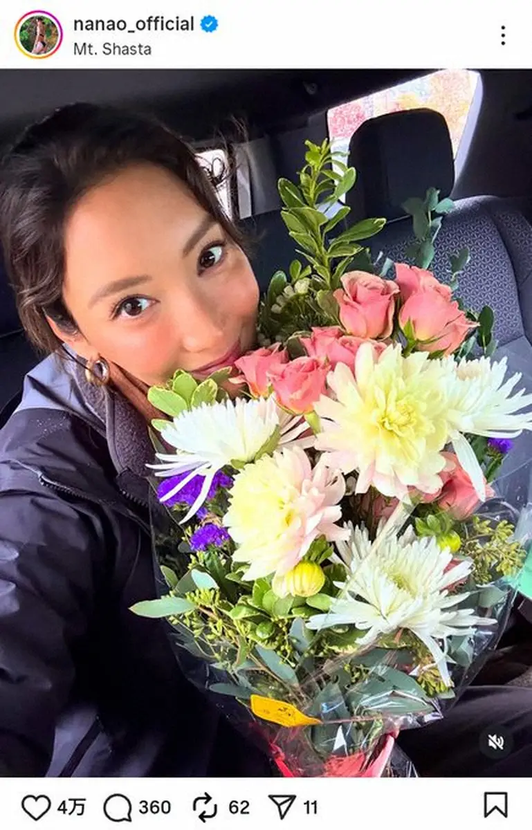 「2025/10/28」「いつも応援してくださるファンの皆様ありがとうございます」と書き出した菜々緒。花束を抱えた写真をアップして、自身の誕生日を祝福されたことを伝えた。