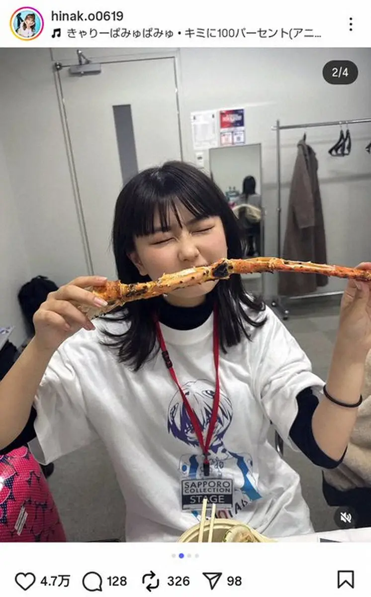 ファンからは「カニ食べてるだけで可愛い」「いっぱい食べてるひなちゃん可愛すぎる」「天真爛漫なところが大好き」「可愛すぎるよ」「美味しそうに食べるおひな」「かわいいひなちゃんみれて私幸せすぎるよ」などのコメントが寄せられた。