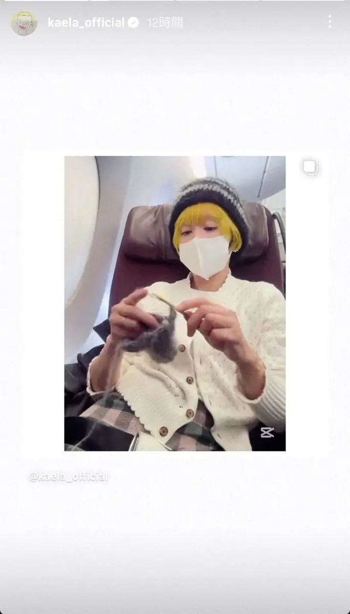 歌手の木村カエラ(41)が11日、自身のインスタグラムを更新。東京から沖縄まで行く飛行機の中で、母のために編み物でハンドフォーマーを作る様子を披露した。