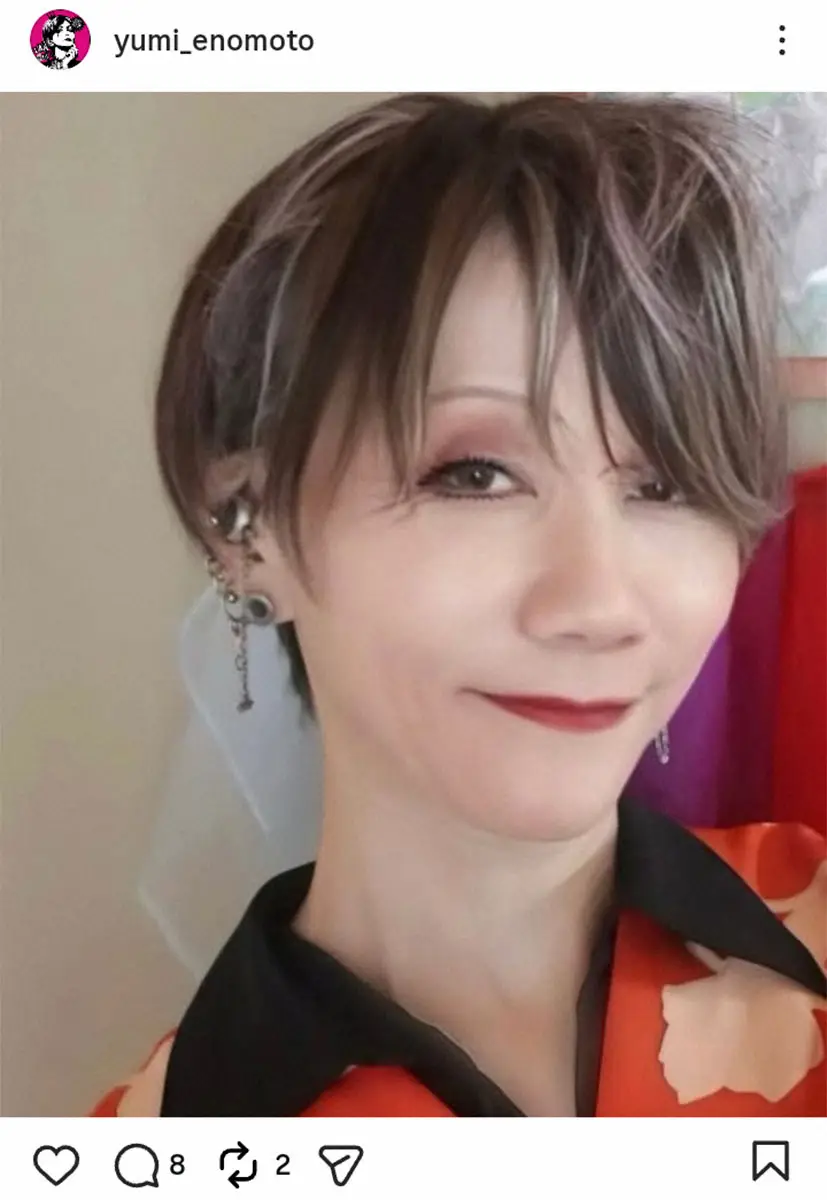 公式インスタグラムでは、榎本さんの写真を添え「榎本由美の息子です。11月4日 母が永眠しました。葬儀は先日、親族のみで行いました」と報告。