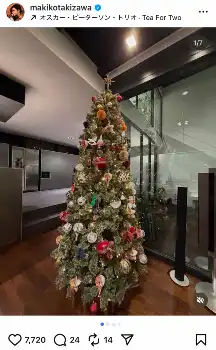 滝沢眞規子 おしゃれ自宅に豪華特大クリスマスツリー 飾りは…「はぁ素敵」「うっとり」の声