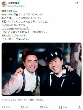 二宮和也 「同期で同い年」盟友の人気俳優と肩組み2S 「よくここまで生き残ったよなぁ」にいいね殺到