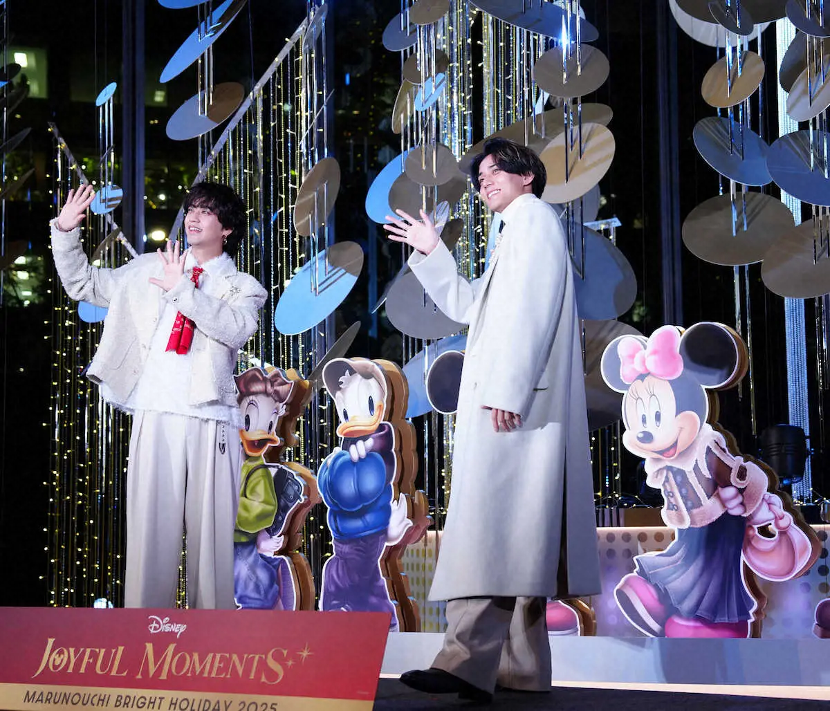 キンプリは13日、東京・丸ビルで、ディズニーの物語をテーマとしたイベントのメインモニュメント点灯式に出席した。2人はミッキーマウスの“ベストフレンド”として活動。永瀬廉(26)は、今年のクリスマスの理想の過ごし方に「素敵なモニュメントが飾られてるならミッキーと来るしかない」とミッキーとの“丸の内デート”を挙げ、「海人も来る?」と髙橋海人(26)を誘った。