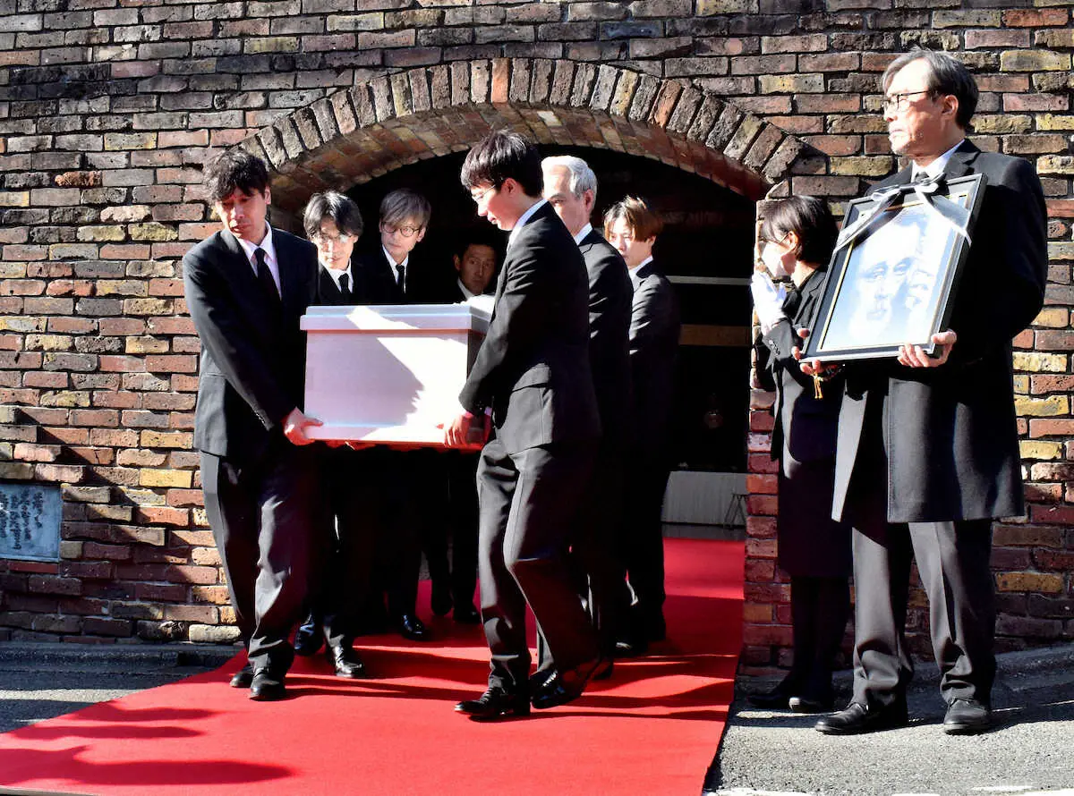 稽古場で葬儀が行われた。午後1時半過ぎ、出棺のために扉が開くと、稽古場から勢いよくレッドカーペットが敷かれた。位牌(いはい)を奈緒、遺影を益岡が持ってその上を歩き、続いて塾生が棺を担いで出てきた。仲代さんにとって、人生最後のレッドカーペット。その様子を、役所は手を合わせて見守った。霊きゅう車に乗って稽古場を離れる際には、参列者から「仲代さんありがとう!」と感謝の声が上がった。