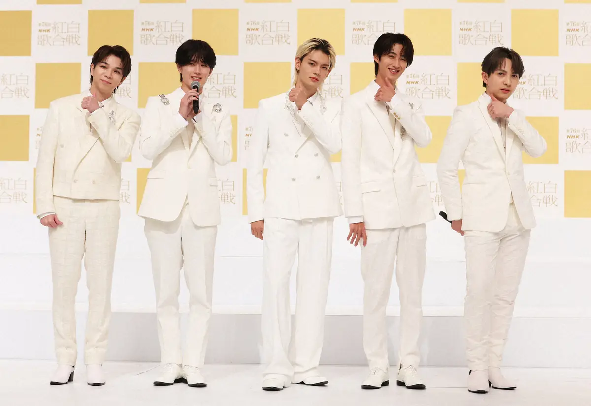 この日朝、事務所スタッフからビデオメッセージで出場を知らされ、リーダーの吉田仁人(25)は放心状態だったという。会見中、5人はくるっと背を向けると「NHK紅白歌合戦」と書かれたボードを改めて目に焼き付け「ここに立ってるのやばっ!」と感情があふれた。塩崎太智(25)は「長年、紅白の舞台を目標にしてきたので、全身で楽しみたいと思います」と早くもパワー全開だ。