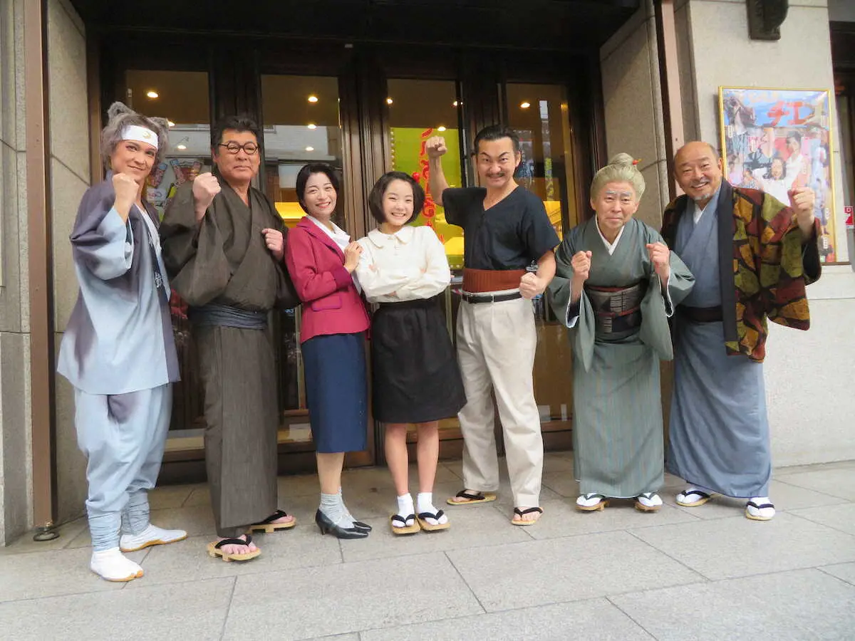 上演前には主要キャスト7人が勢ぞろいしてのイベントが行われ、それぞれ役の扮装(ふんそう)であいさつ。ヒロインの澤井梨丘(15)が、チエちゃんのトレードマーク、ゲタに赤い大きな髪飾りを付けて登場すると劇場前に詰めかけたファンからは歓声が上がった。澤井は「こうして本番初日を迎えられたのもスタッフの皆さん、キャストの皆さん、そして皆さまのおかげだと思っています。じゃりン子チエの世界に入ってしっかりチエちゃんを演じて、元気に頑張りま~す!」と笑顔いっぱい。
