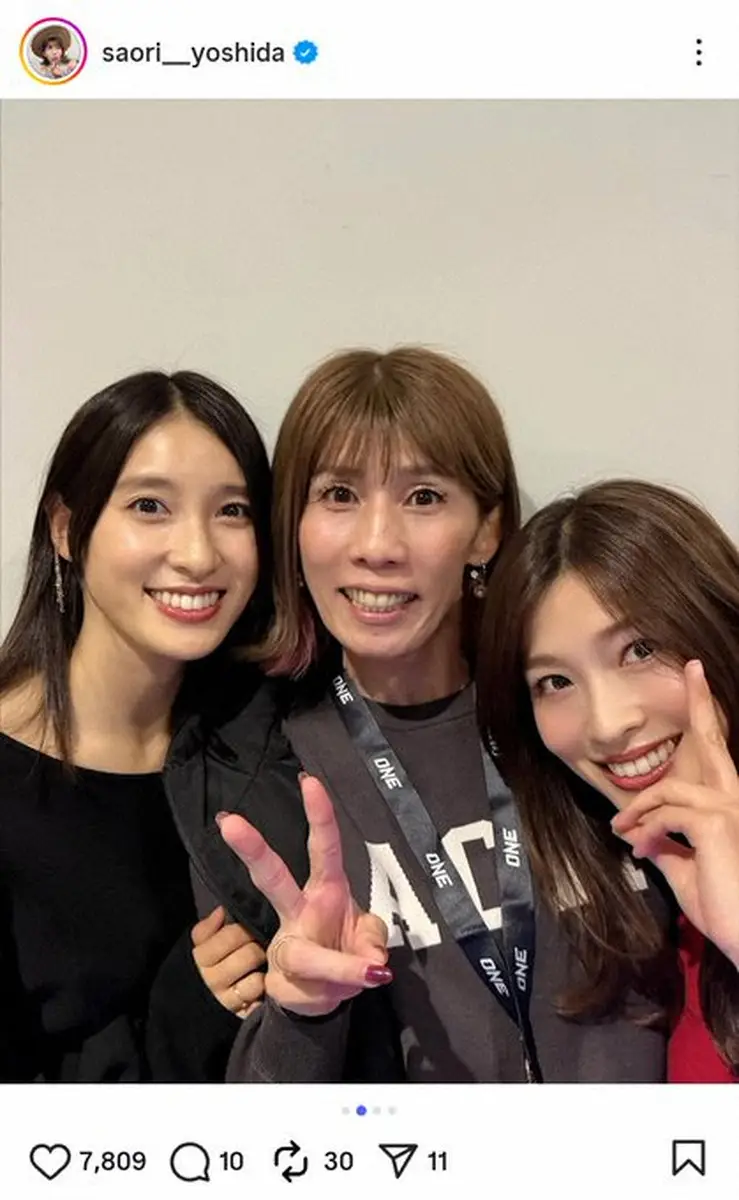 女子レスリング五輪3連覇の吉田沙保里さん(43)が17日までに自身のインスタグラムを更新。人気女優らとの2ショットを披露した。