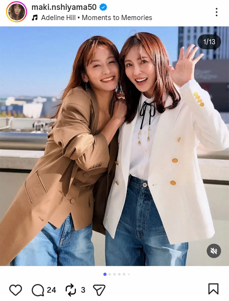 モデルの西山茉希(40)が17日、自身のインスタグラムを更新し、先輩モデルの押切もえ(45)との2ショットを披露した。