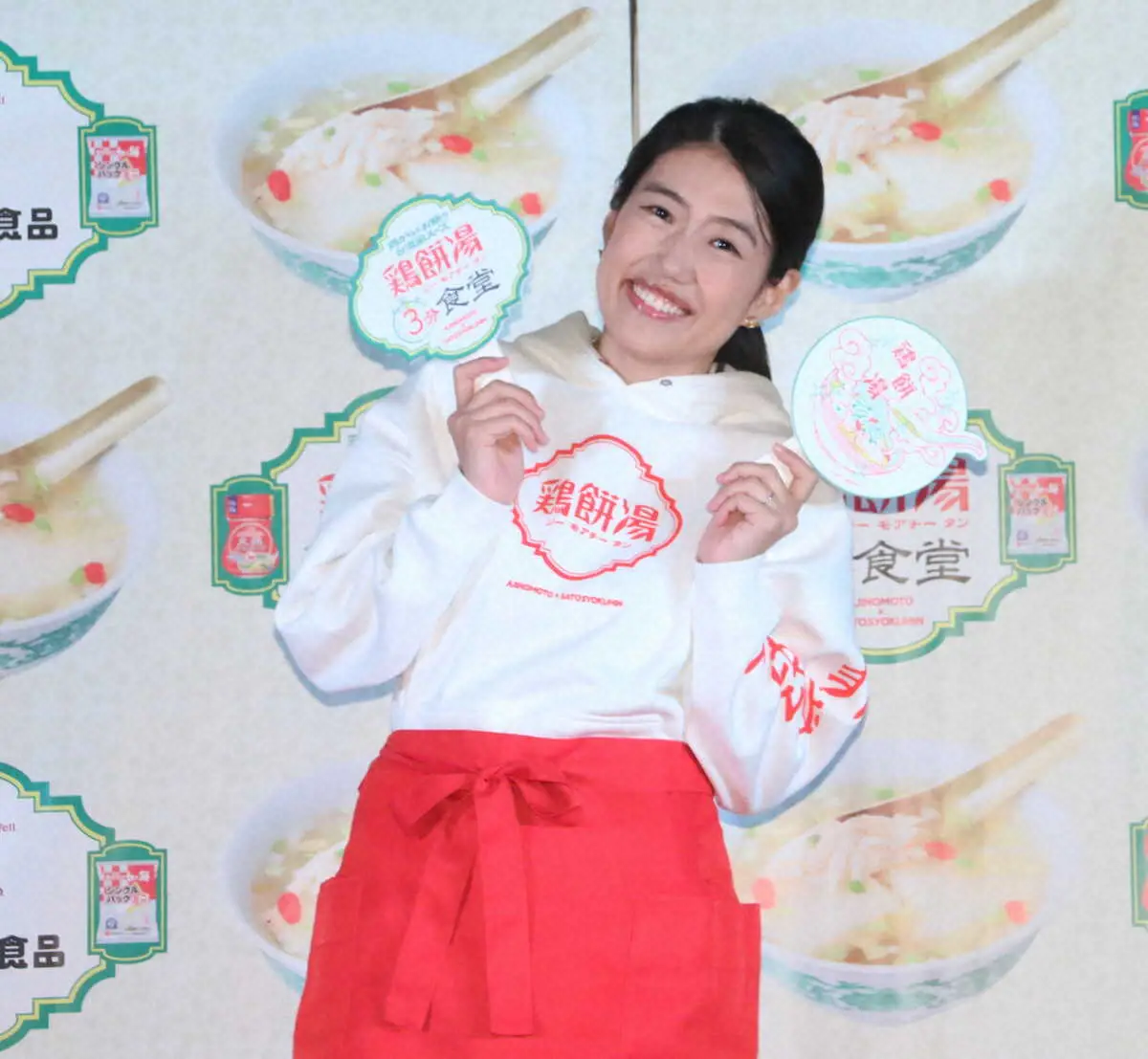 お笑いタレントの横澤夏子(35)が20日、都内でサトウ食品と味の素が手がける「鶏餅湯(ジーモアチータン)3分食堂」のツアー出発式に出席した。