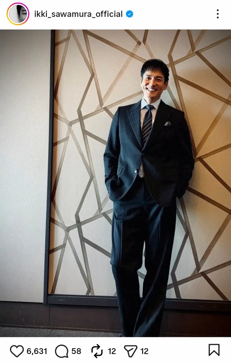 俳優の沢村一樹(58)が、21日までに自身のインスタグラムを更新。ダンディショットを披露した。