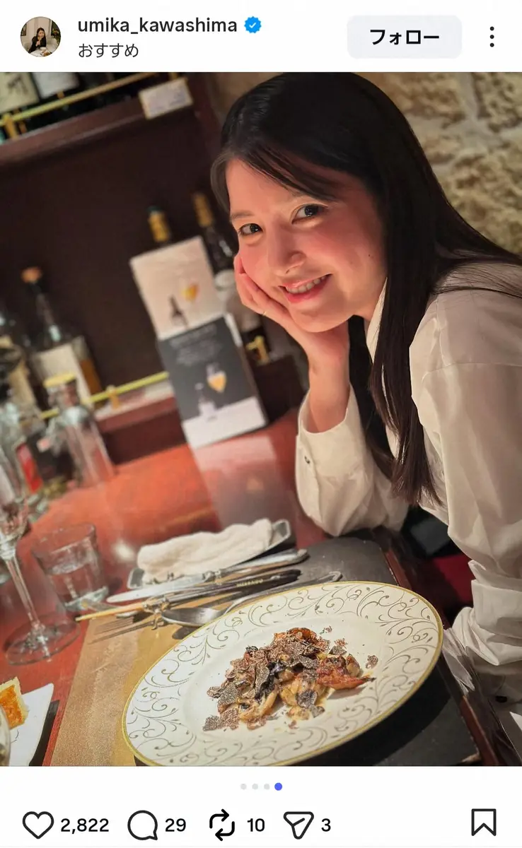 川島海荷のインスタグラム(@umika_kawashima)から 川島海荷 カメラ見つめる“ほろ酔いショット”に秋コーデも披露でファンく… ギャラリーで見る この記事のフォト 2025年11月21日の画像一覧 もっと見る 2025年11月21日の画像をもっと見る